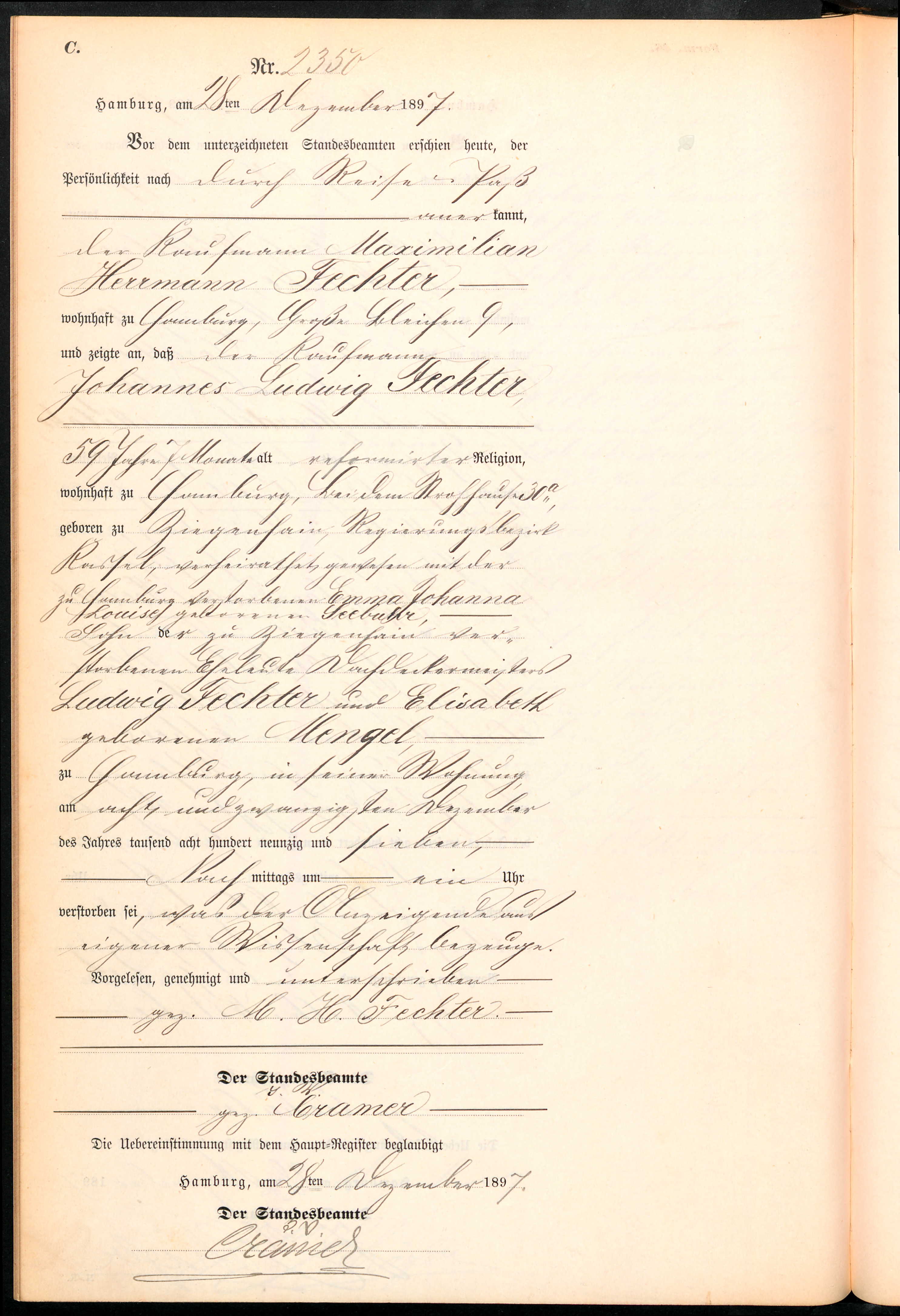 Ludwig Fechter Death Certificate