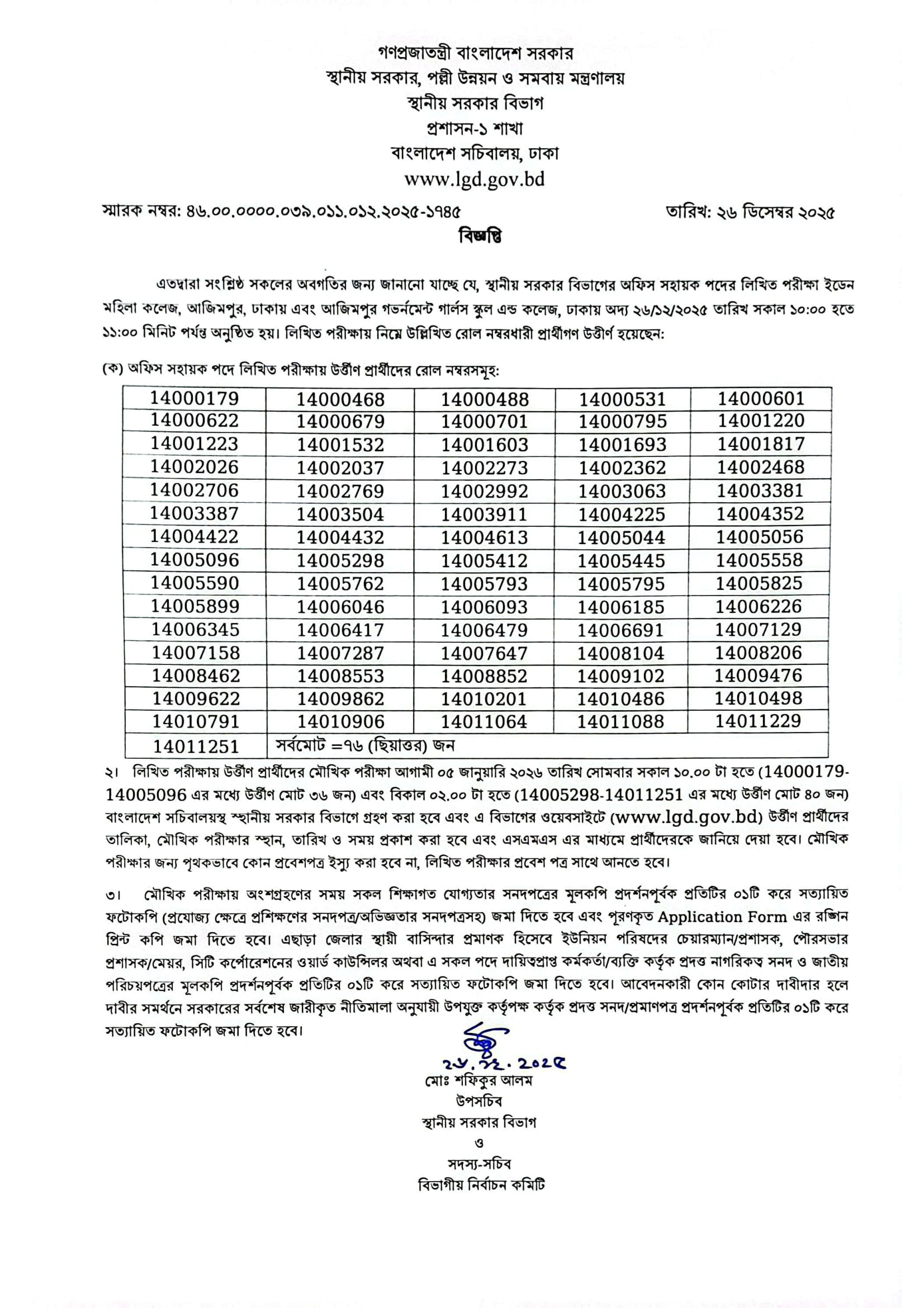 LGD Office Sohayok Exam Result 2025 PDF 1