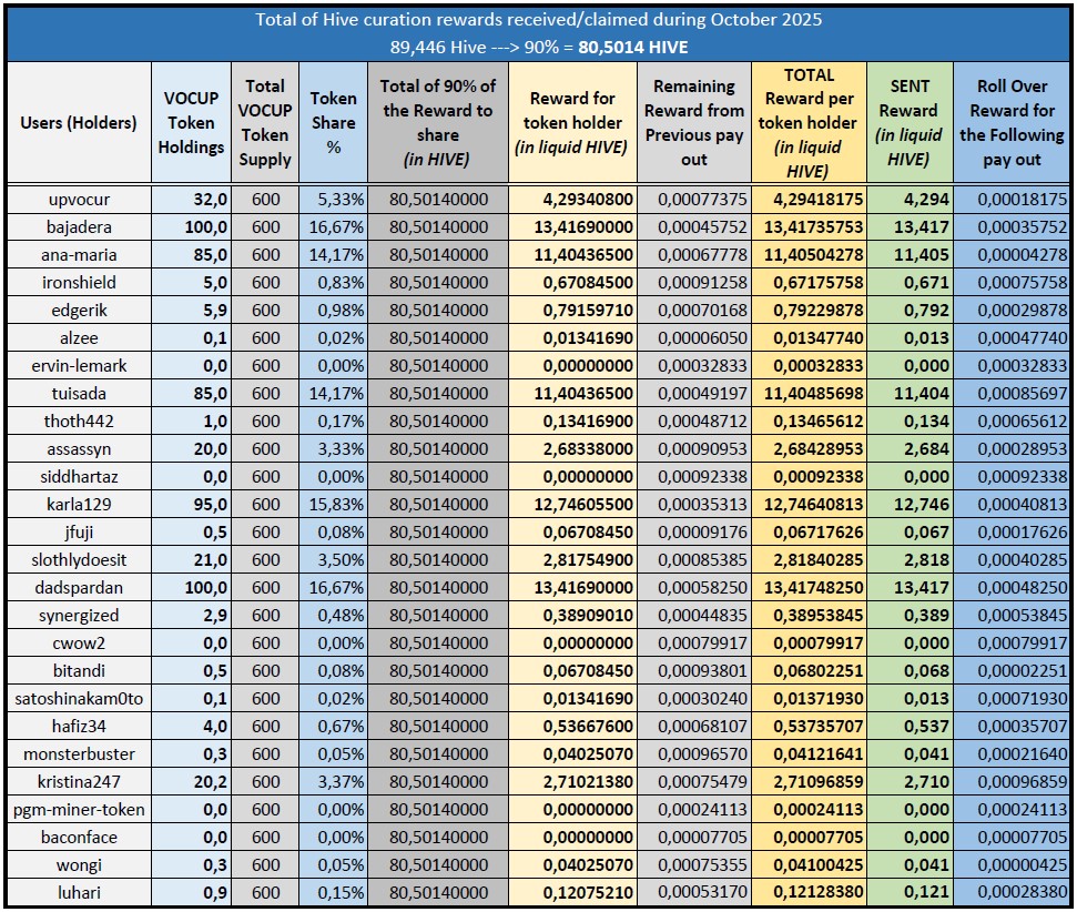 Table of Rewards for October 2025 10