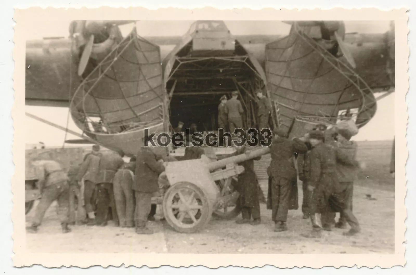 Foto Luftwaffe Transportgeschwader 5 PaK für Afrika Korps vor Me 323 Flugzeug