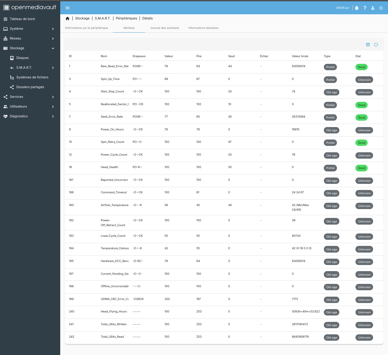 données smart HDD OMV8