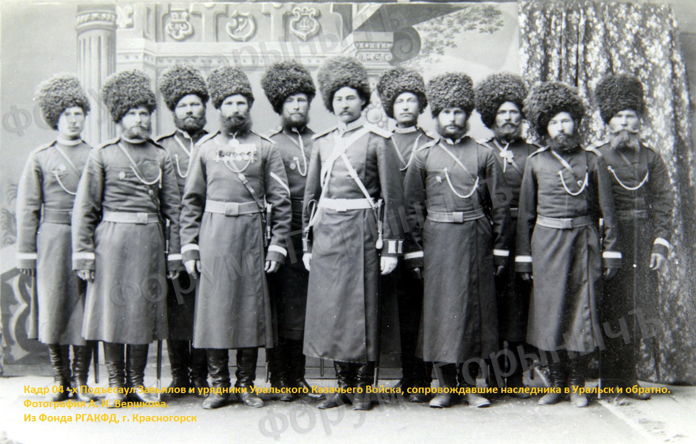 Кадр 04 –х Подъесаул Завьялов и урядники Уральского Казачьего Войска, сопровождавшие наследника в Ур