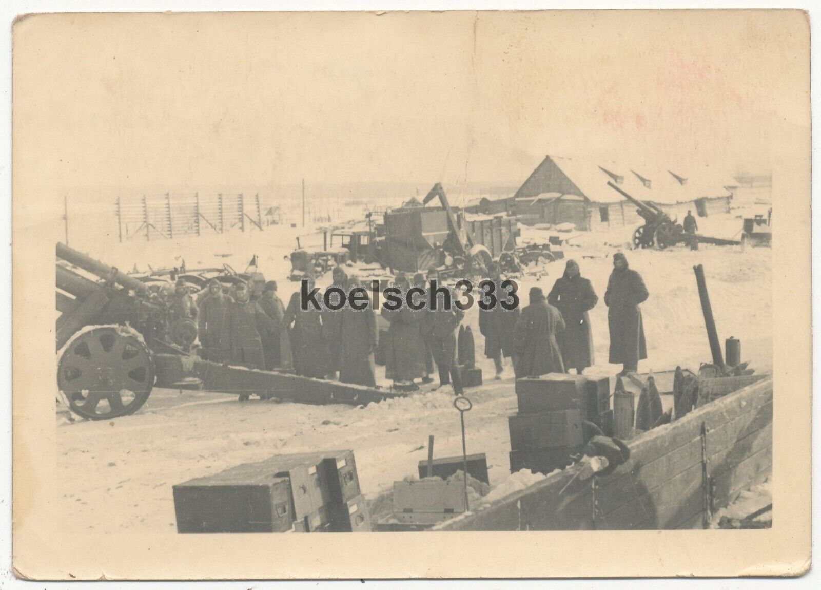 Foto Artillerie Geschütze der Wehrmacht in Feuerstellung in Ugra Russland Winter