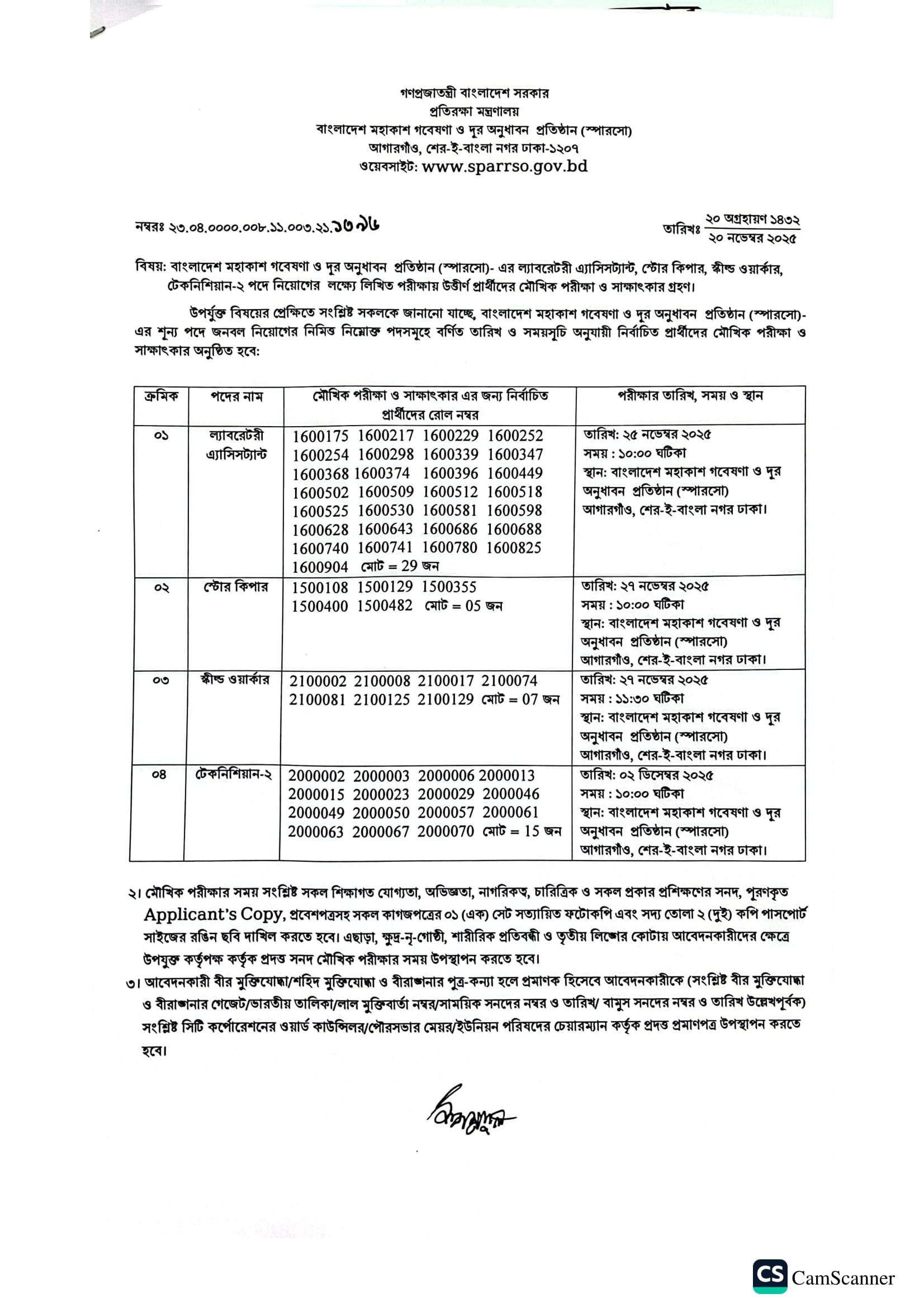 SPARRSO Exam Result 2025 PDF 1