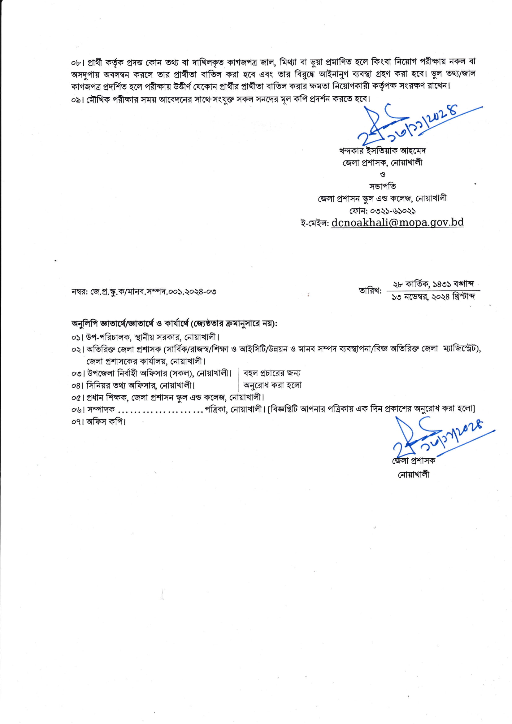 Zila Proshason School and College Noakhali Job Circular PDF-2