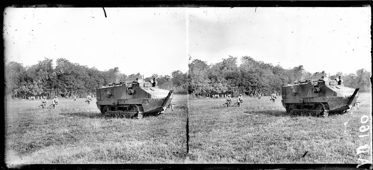 Des chars de type Schneider parcourent le terrain du bois de Saint-Imoges lors d'un exercice combiné