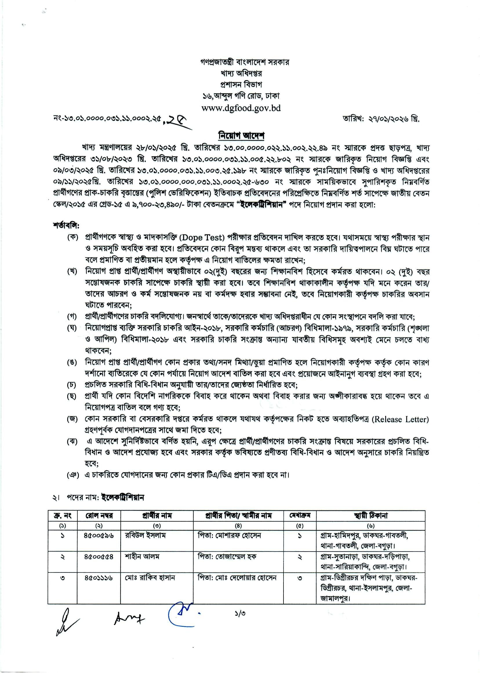 Food Electrician Job Appointment Letter 2026 PDF 1