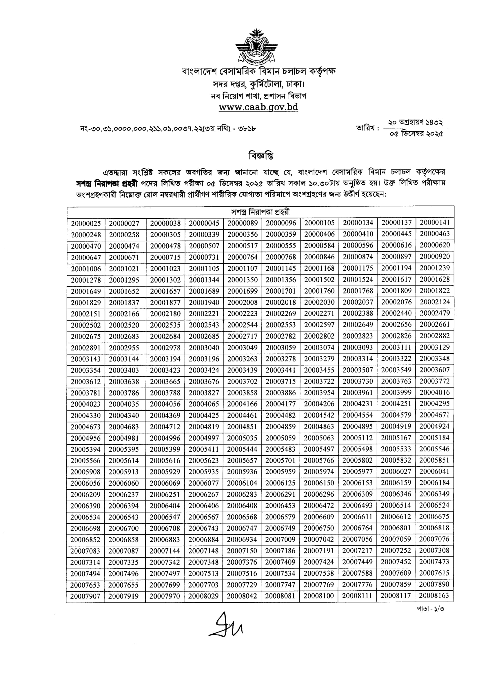CAAB Written Exam Result Notice 2025 PDF 1
