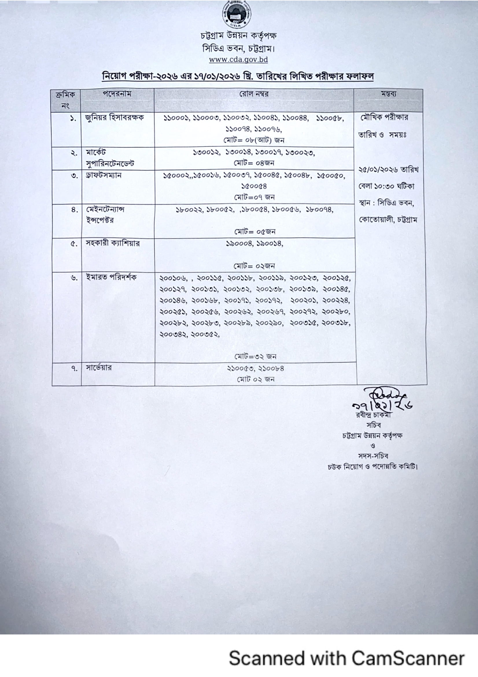 CDA Exam Result 2026 PDF 2