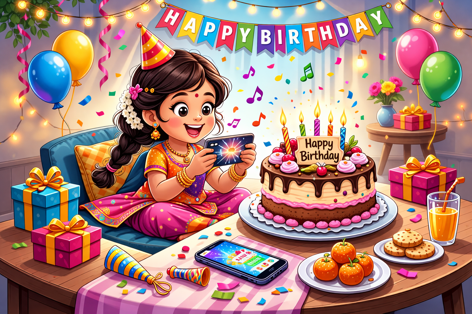 Festive birthday celebration in vibrant colours
