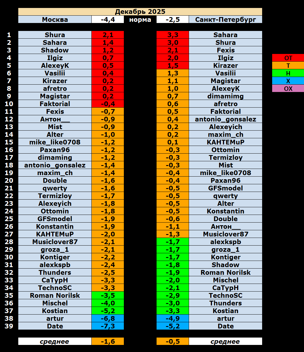 Таблица прогнозов (декабрь 2025)