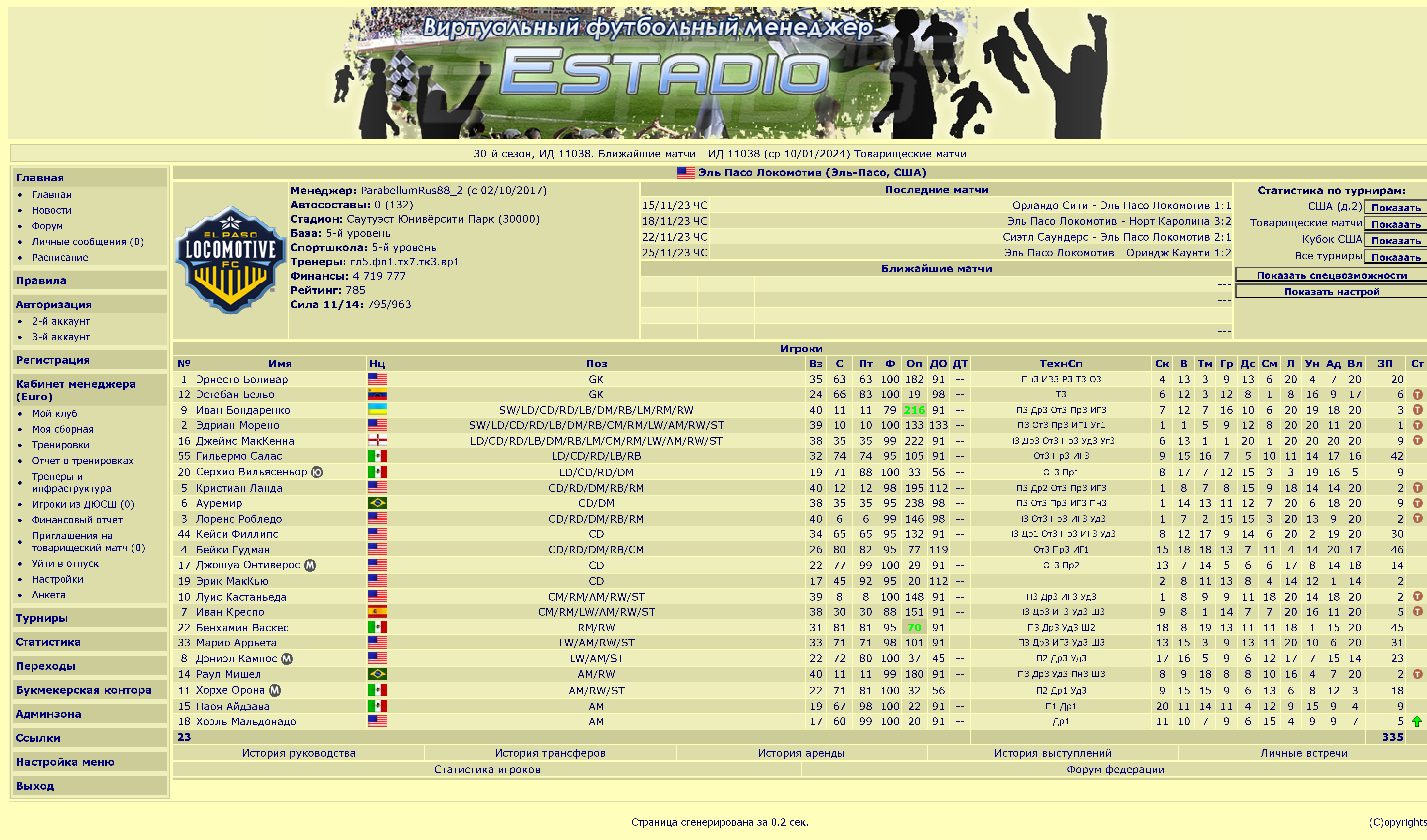 Эль Пасо Локомотив (Эль-Пасо, США) - виртуальный футбольный менеджер Эстадио