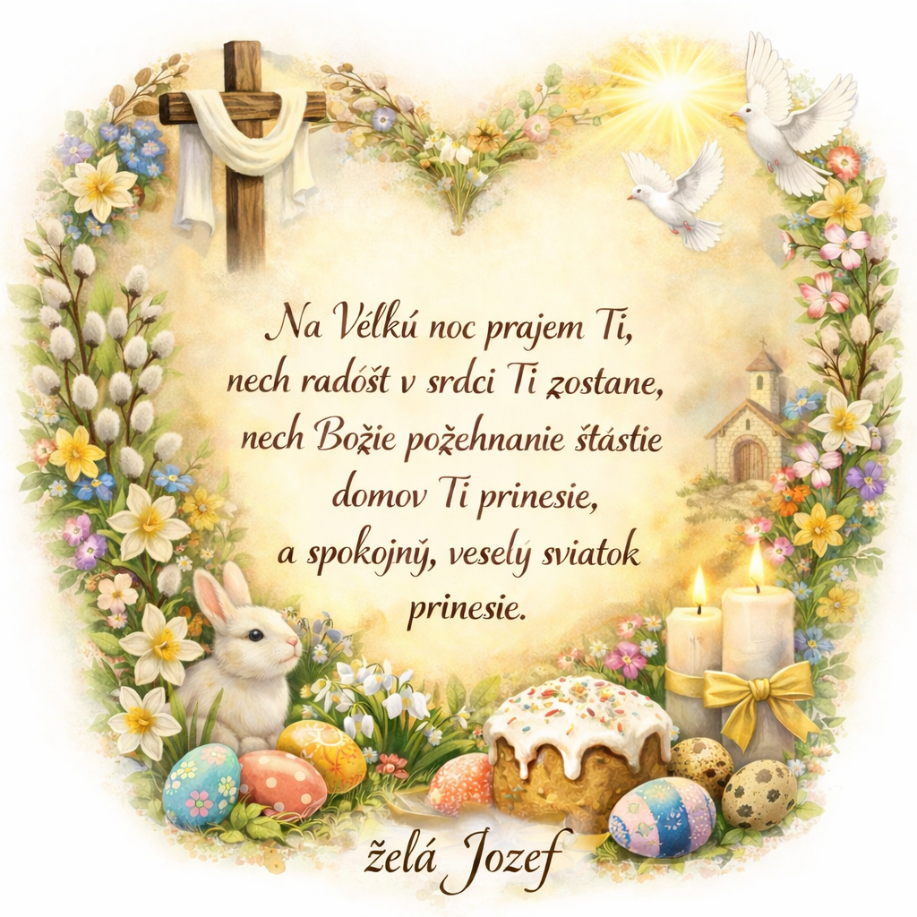Veľkonočné prianie s kvetmi a zajačikom