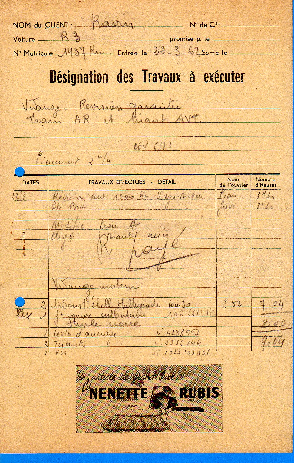 1962-03-22 - R3 Ravin (16)a carton atelier révision 1000 km