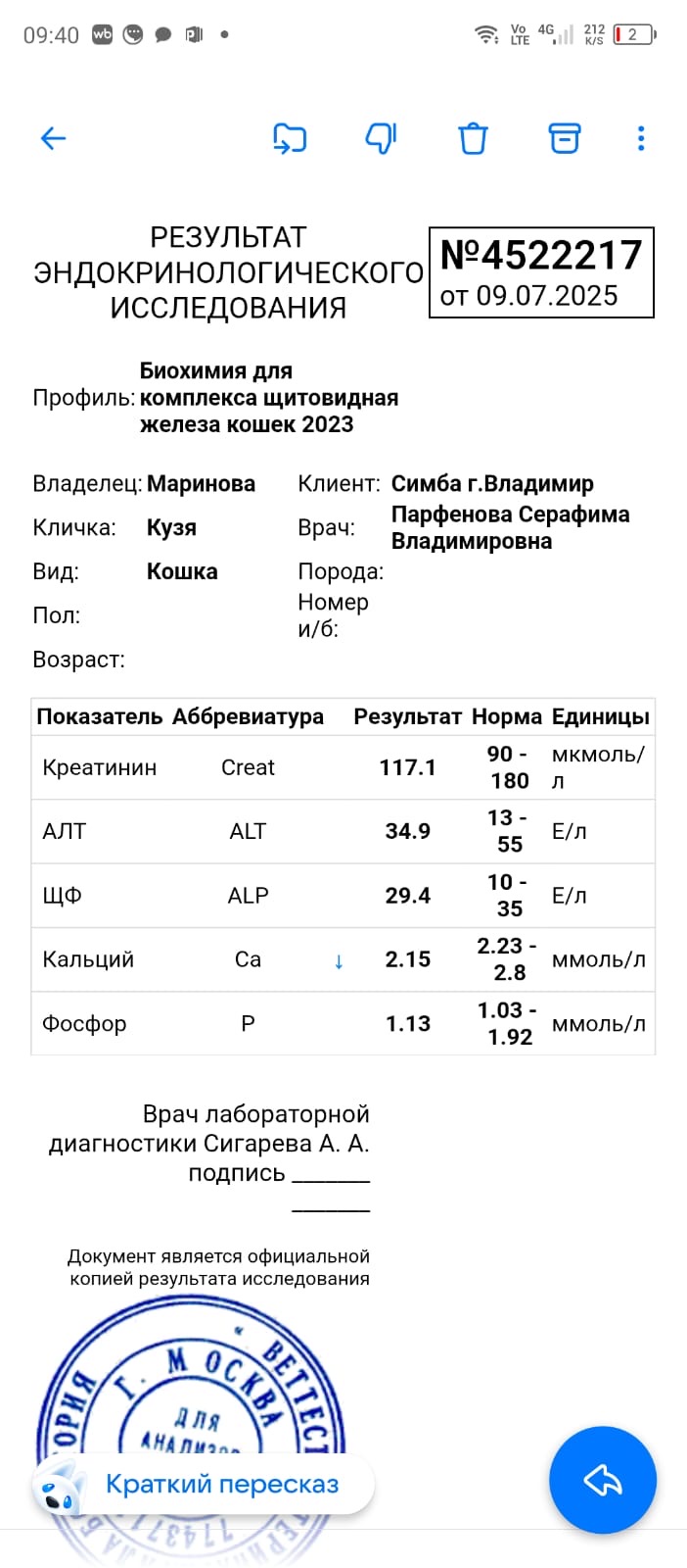результаты анализов 09.07.25