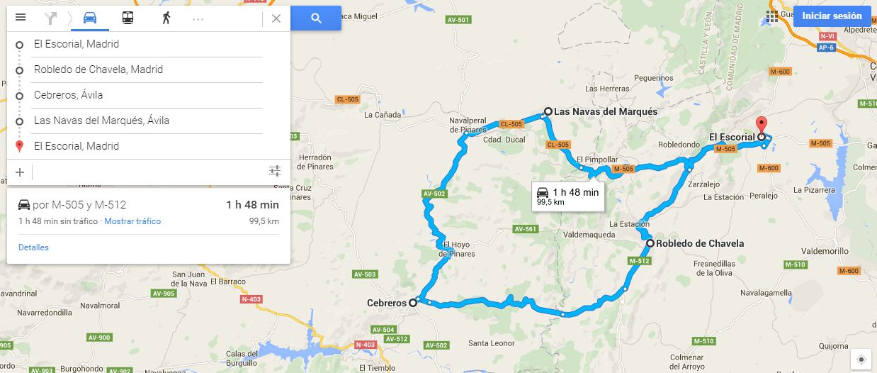 Ruta Escorial Robledo Cebreros Navas Escorial