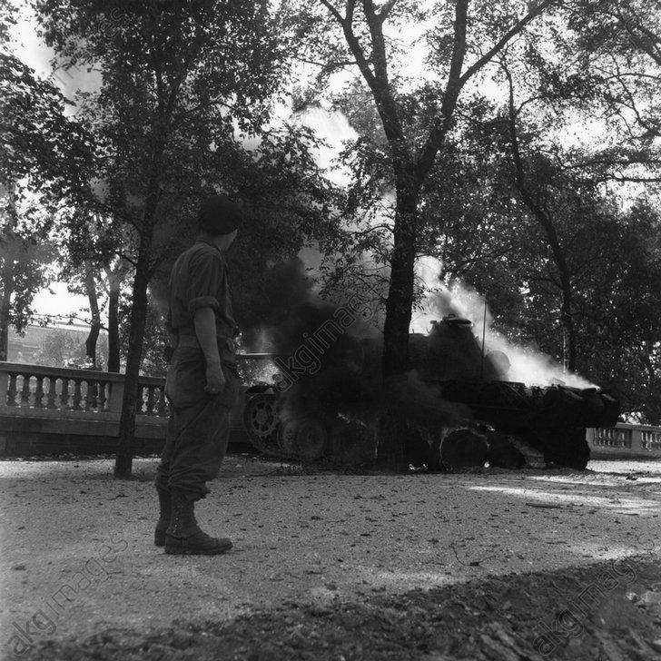 char blindé allemand brûlant dans le jardin des