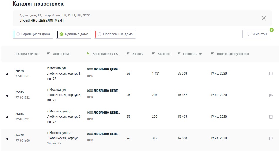 ЛП сданные дома.