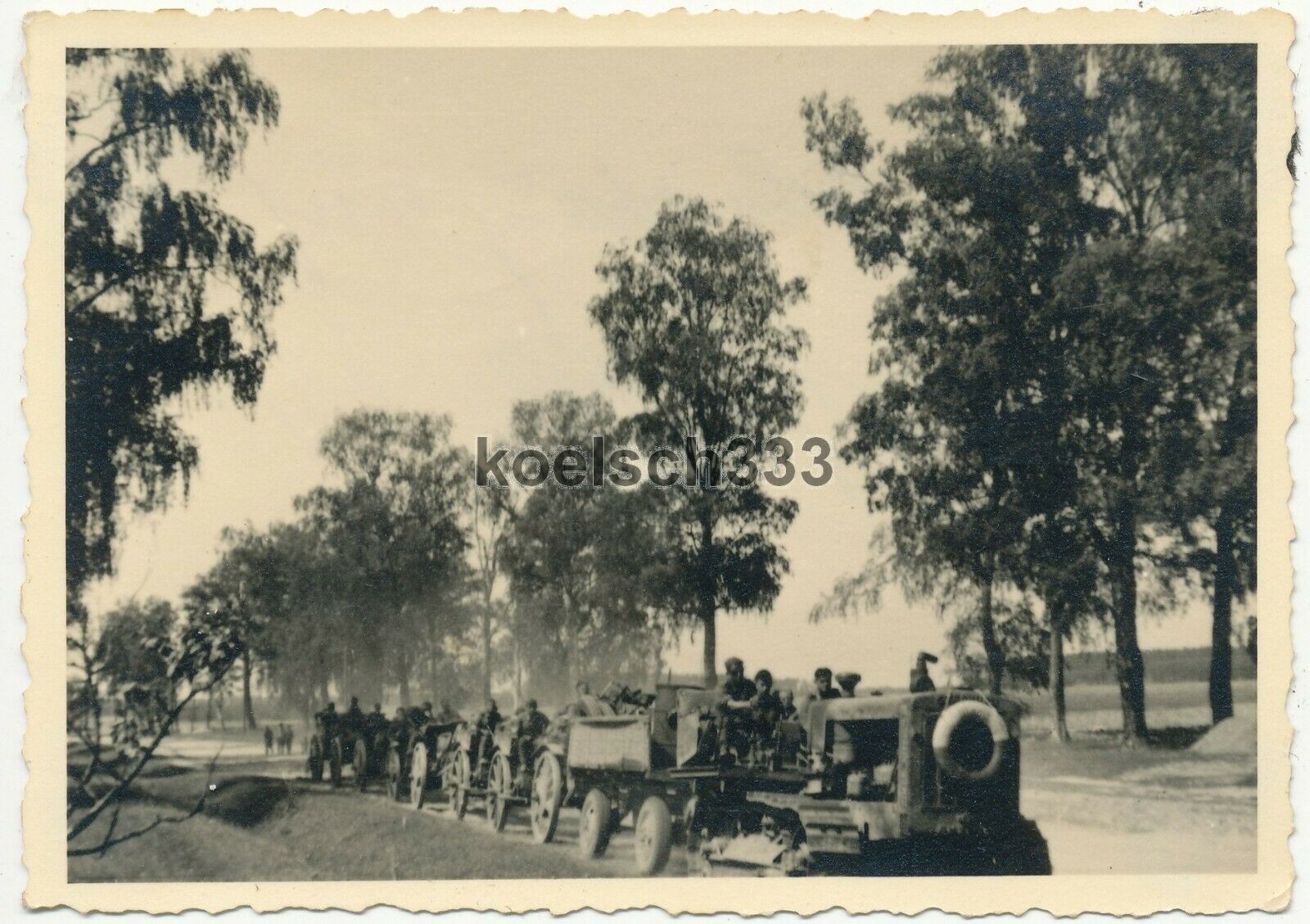 Foto erbeuteter russischer Traktor schleppt Artillerie Geschütze und Protzen