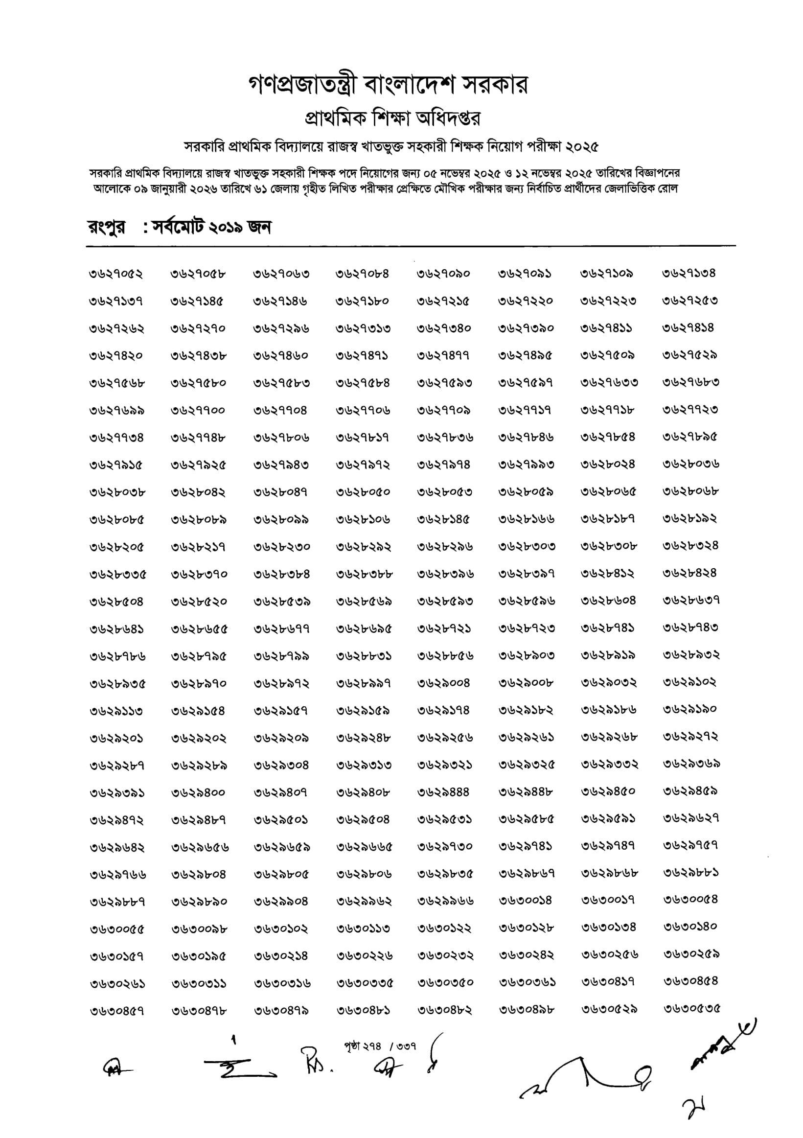 Primary MCQ Exam Result 2026 PDF 276