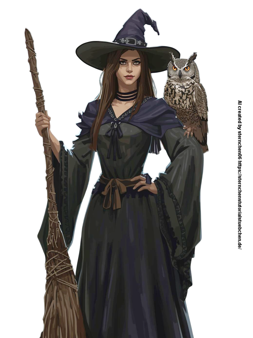 a witch with her witch broom and her owl on her shoulder (10)-Photoroom