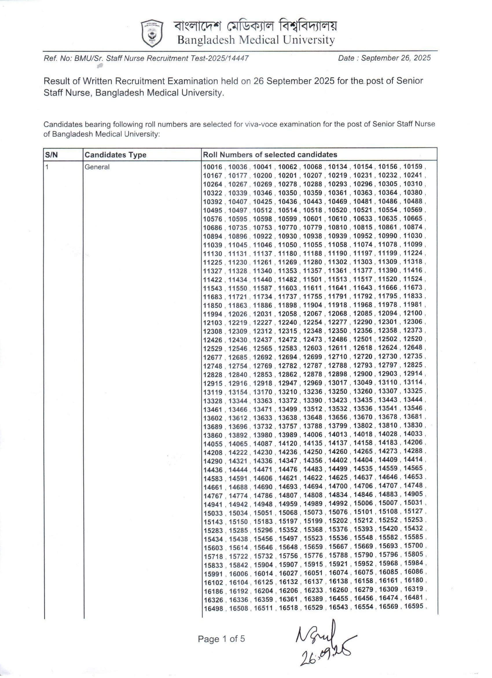 BMU Senior Staff Nurse Exam Result 2025 PDF-1