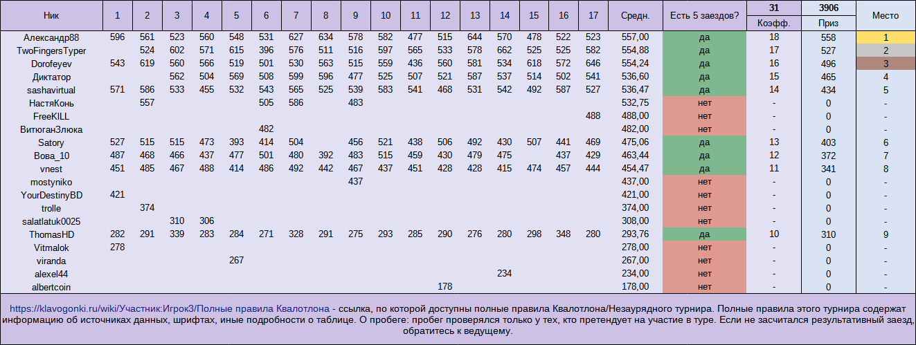 НЗТ6, общий зачёт