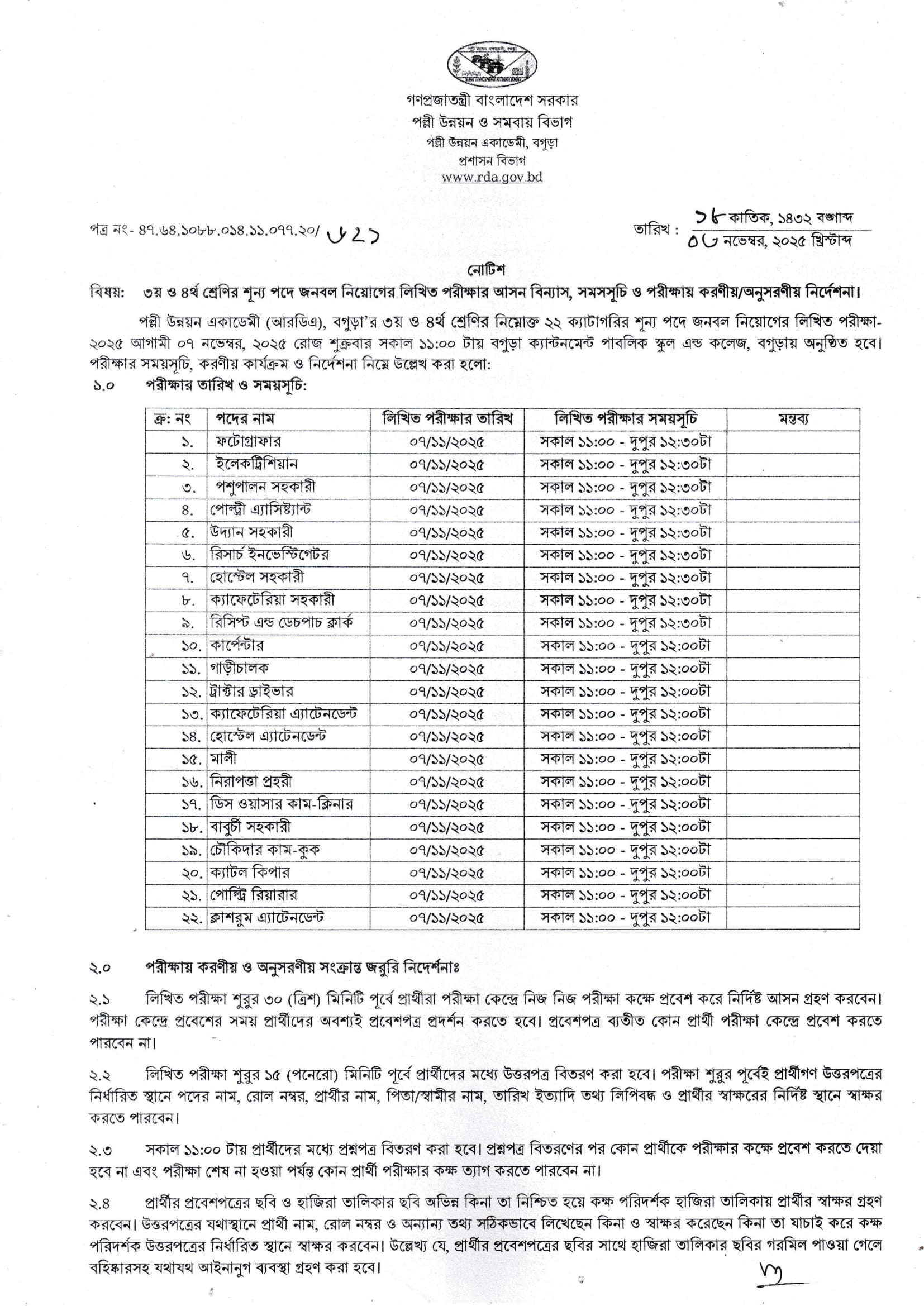 RDA Bogura Exam Date 2025 PDF 1
