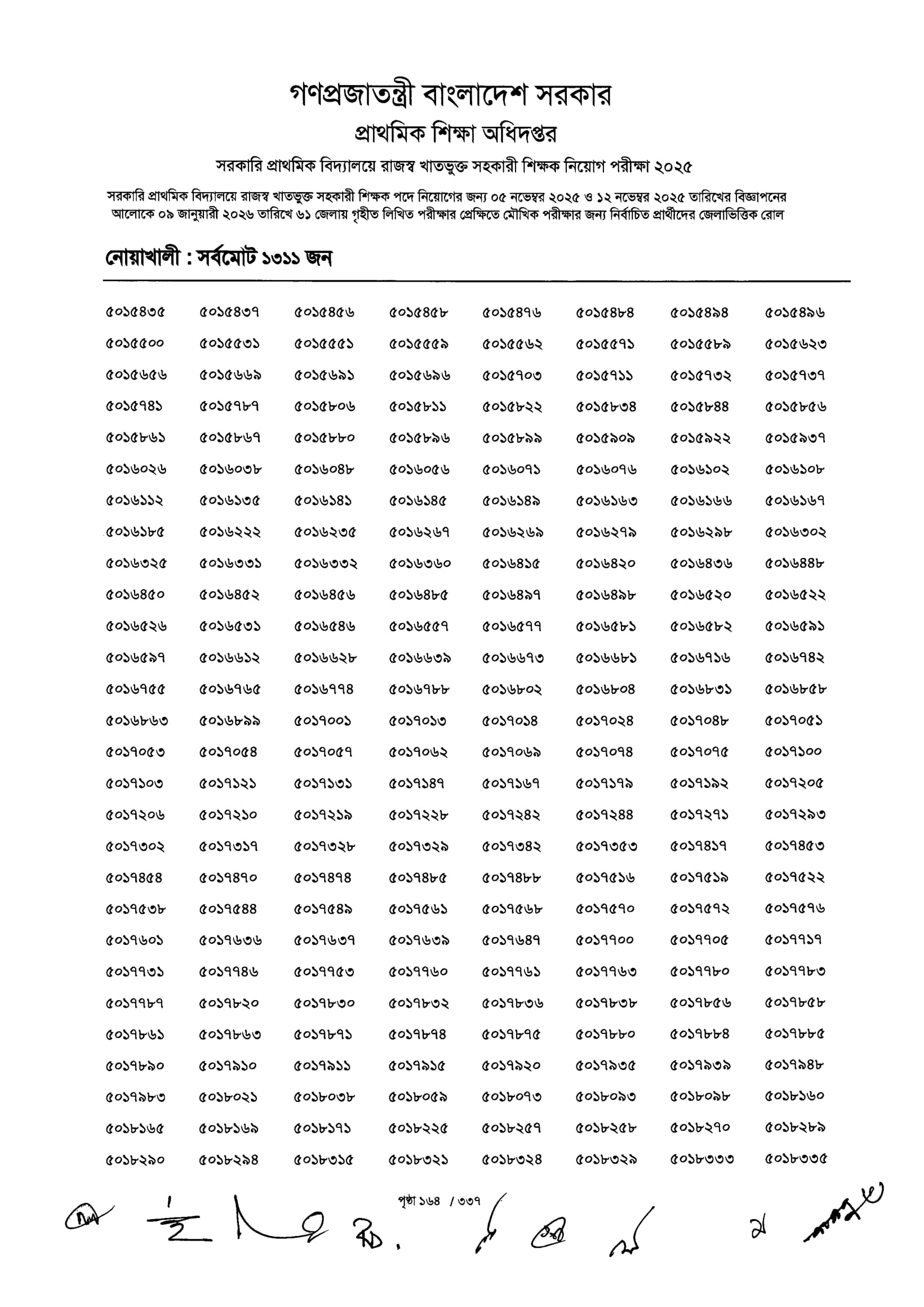 Primary MCQ Exam Result 2026 PDF 166