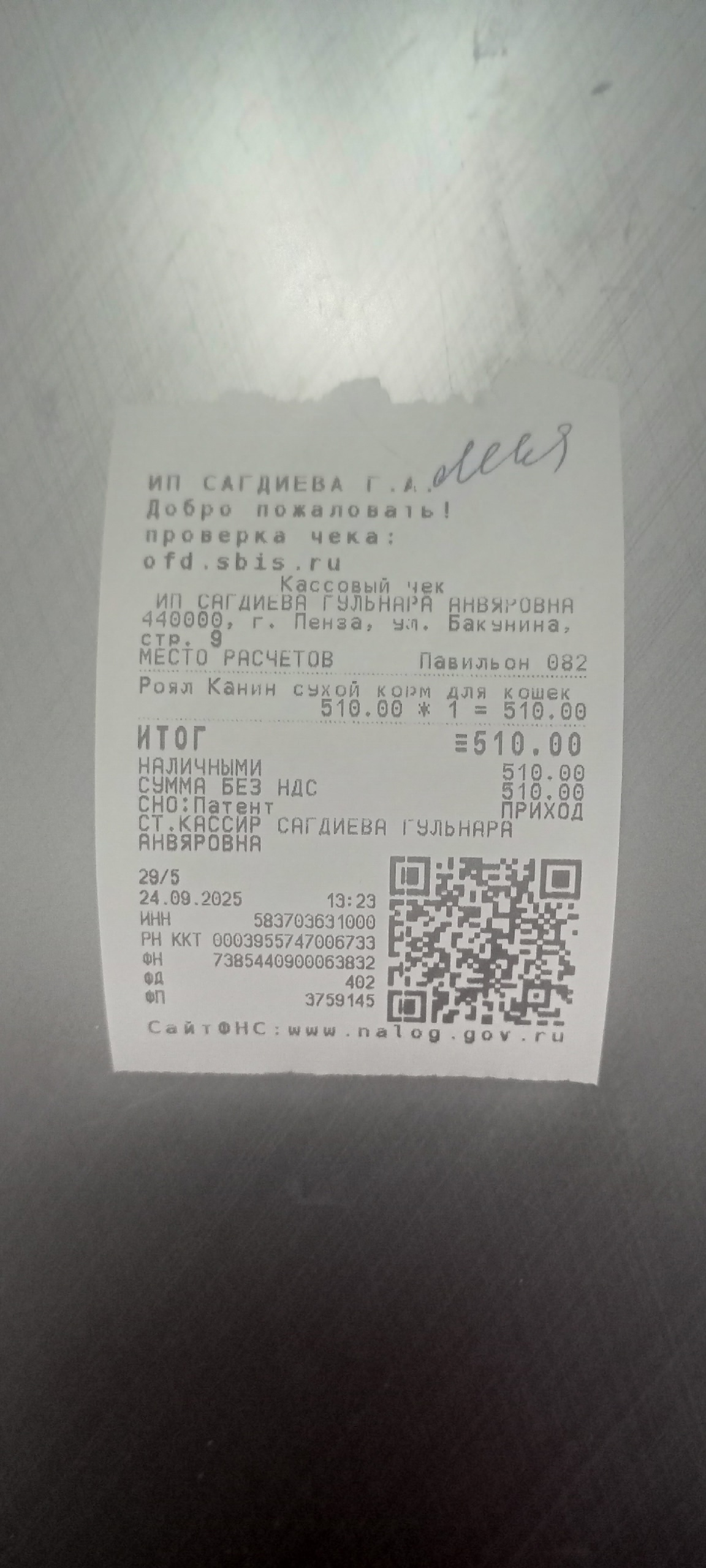 Леся чек 24.09.2025 корм 510,00