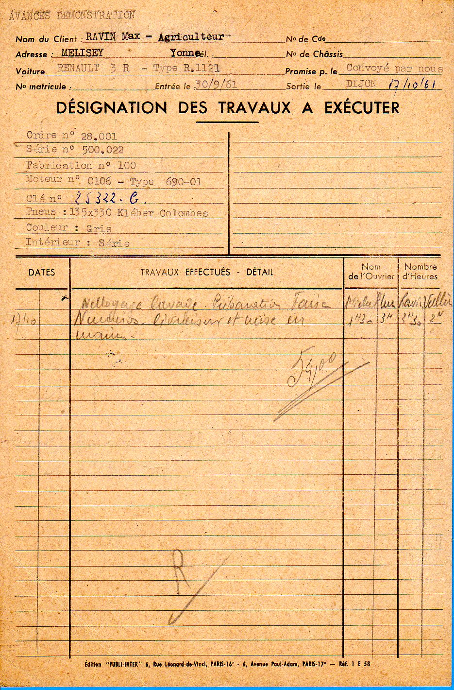 1961-09-30 - R3 Ravin (7) carton atelier préparation R3 VN