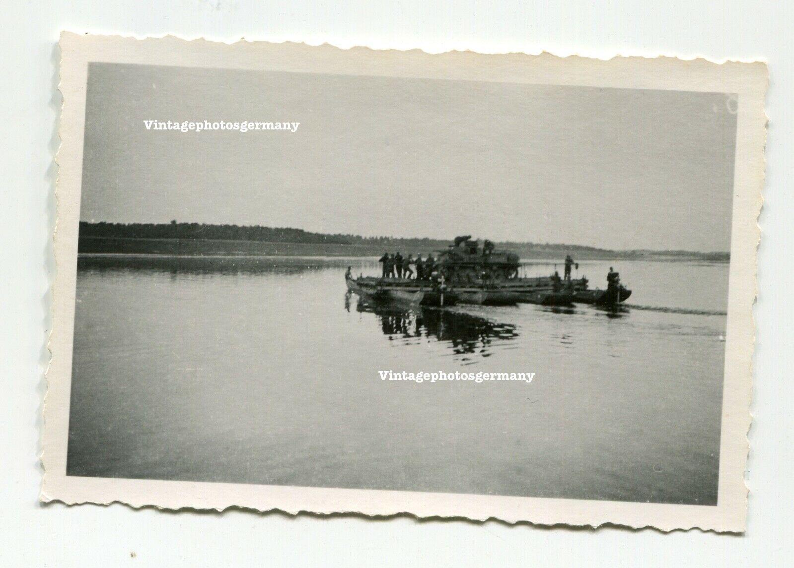 Foto Russland deutscher Panzer III auf Fähre Sturmboot Pioniere Düna