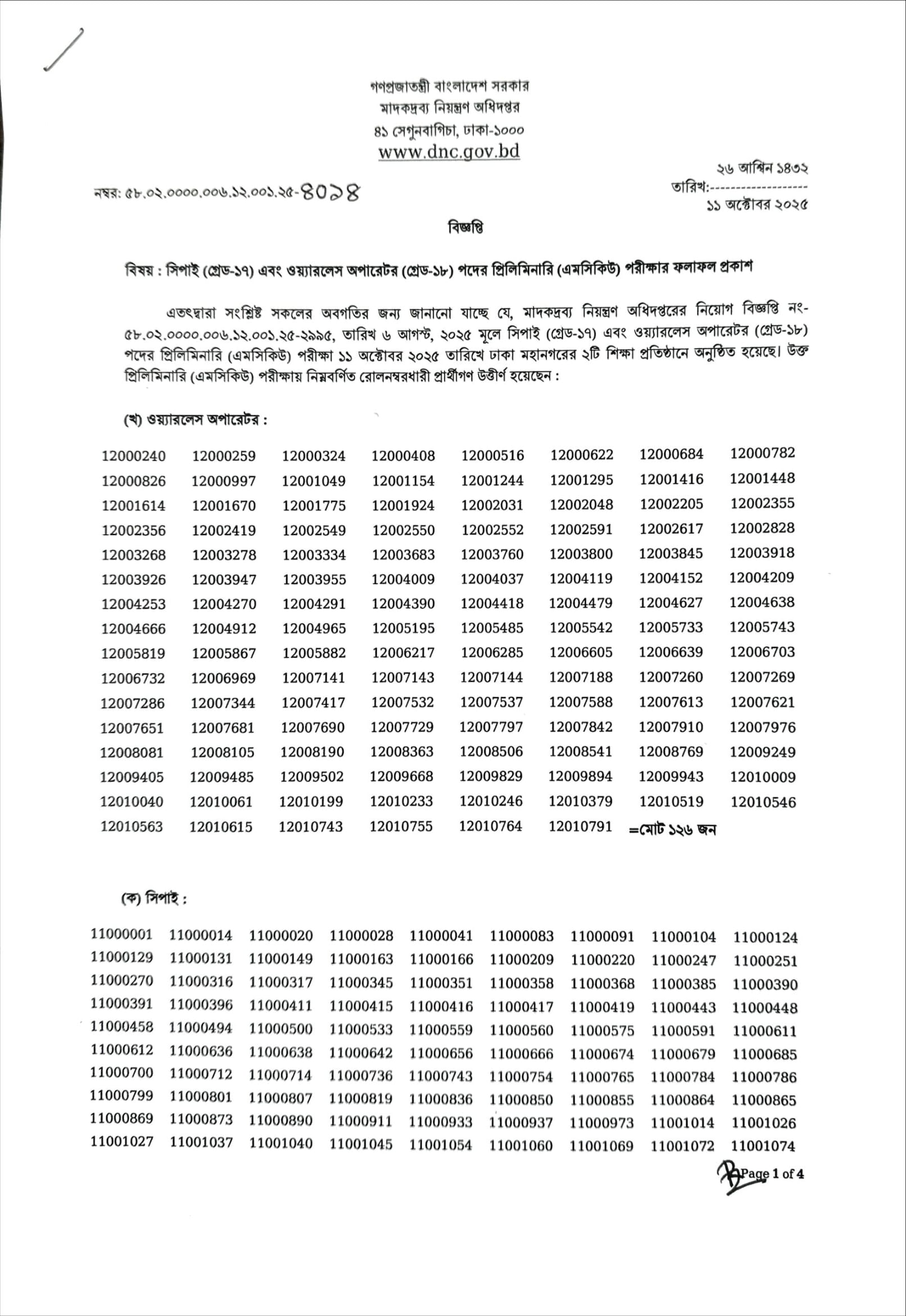 DNC MCQ Exam Result 2025 PDF-1