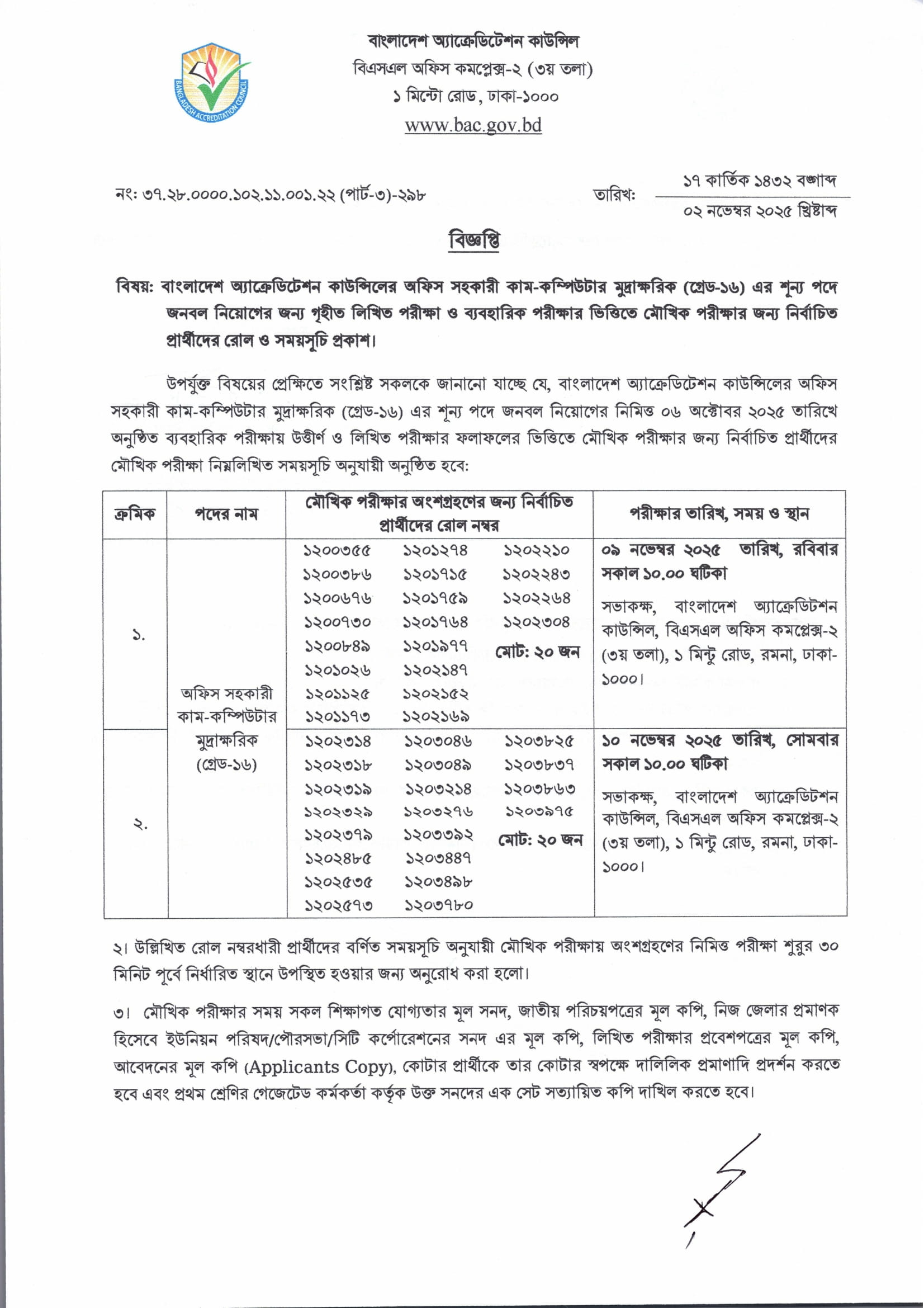 BAC Practical Test Result 2025 PDF 1