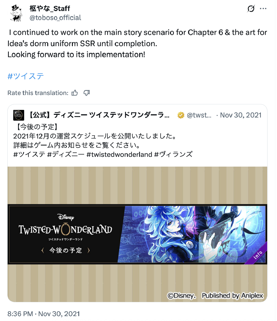 toboso yana wrote book 6 tweet