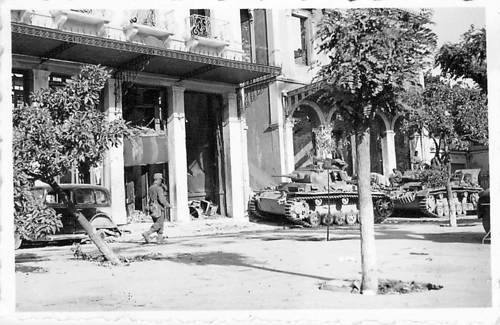 Wehrmacht Panzer III mit Besatzung in Bereitstellung vor zerstör