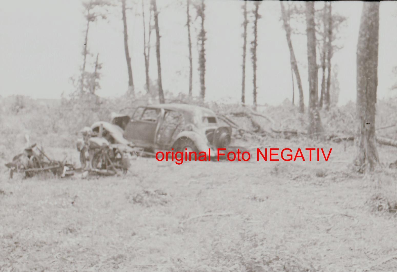 zerstörtes Fahrzeug und französische Krad nach K