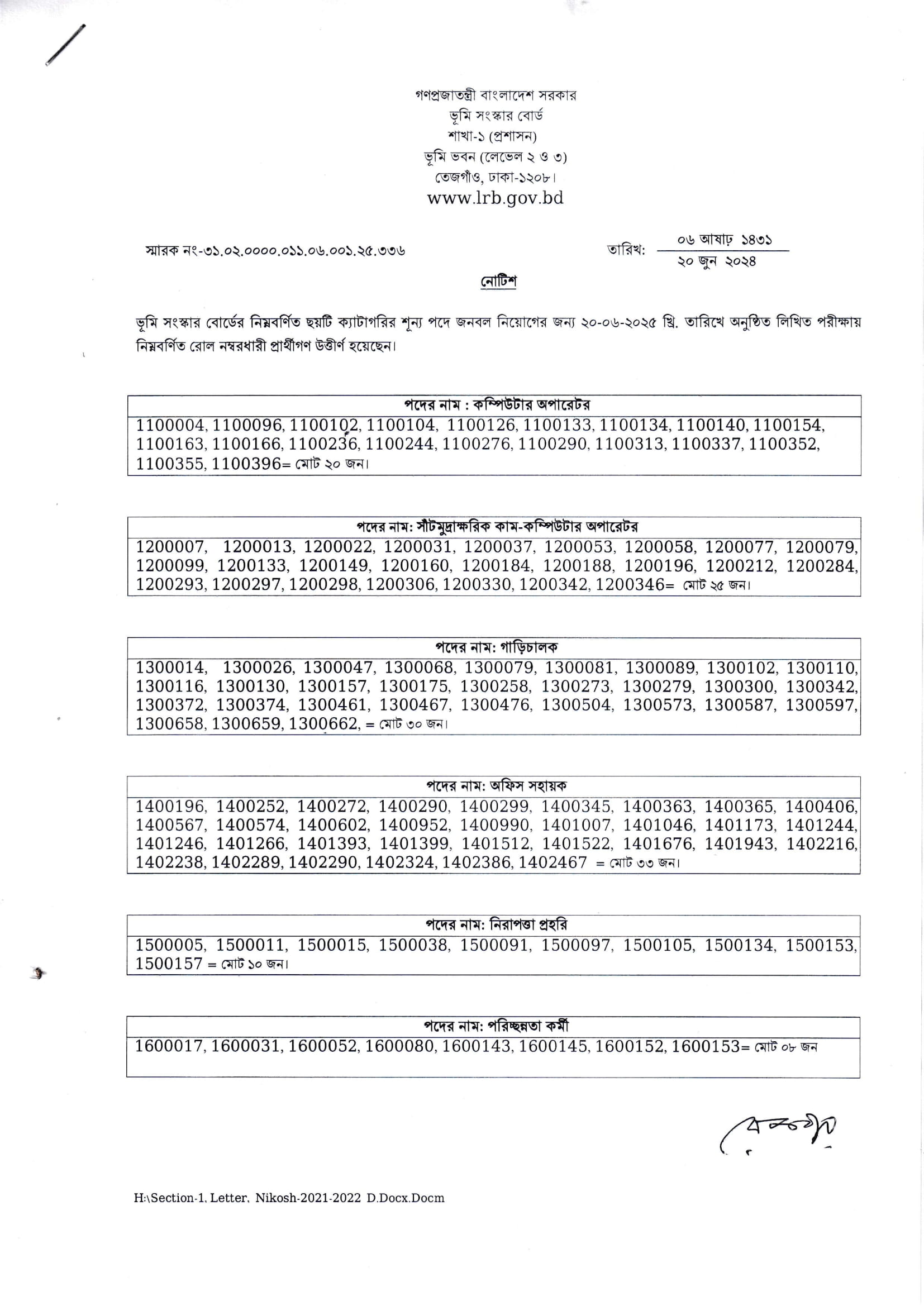 Land Reforms Board (LRB) Exam Result 2025 PDF-1