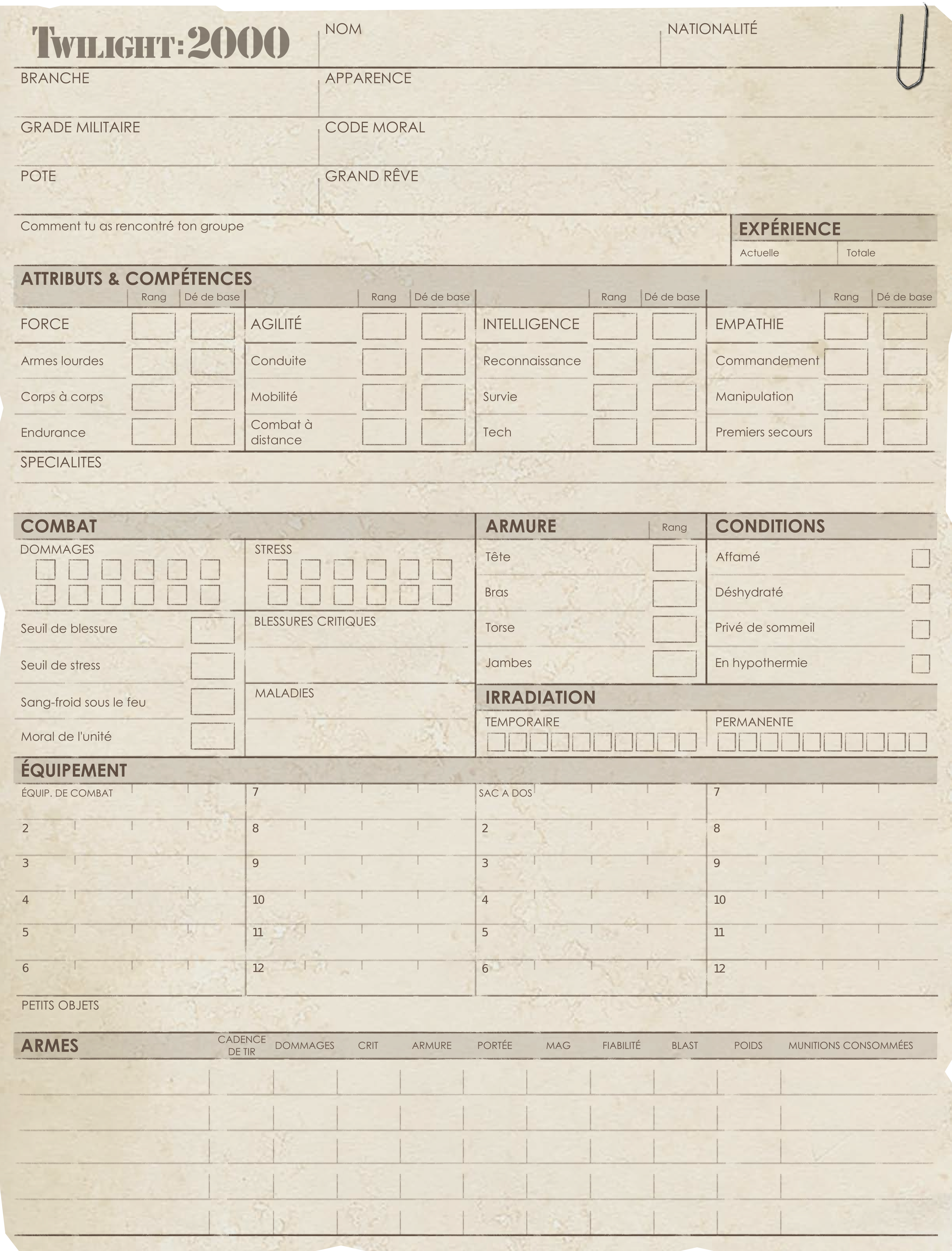 T2K Alpha Character Sheet French
