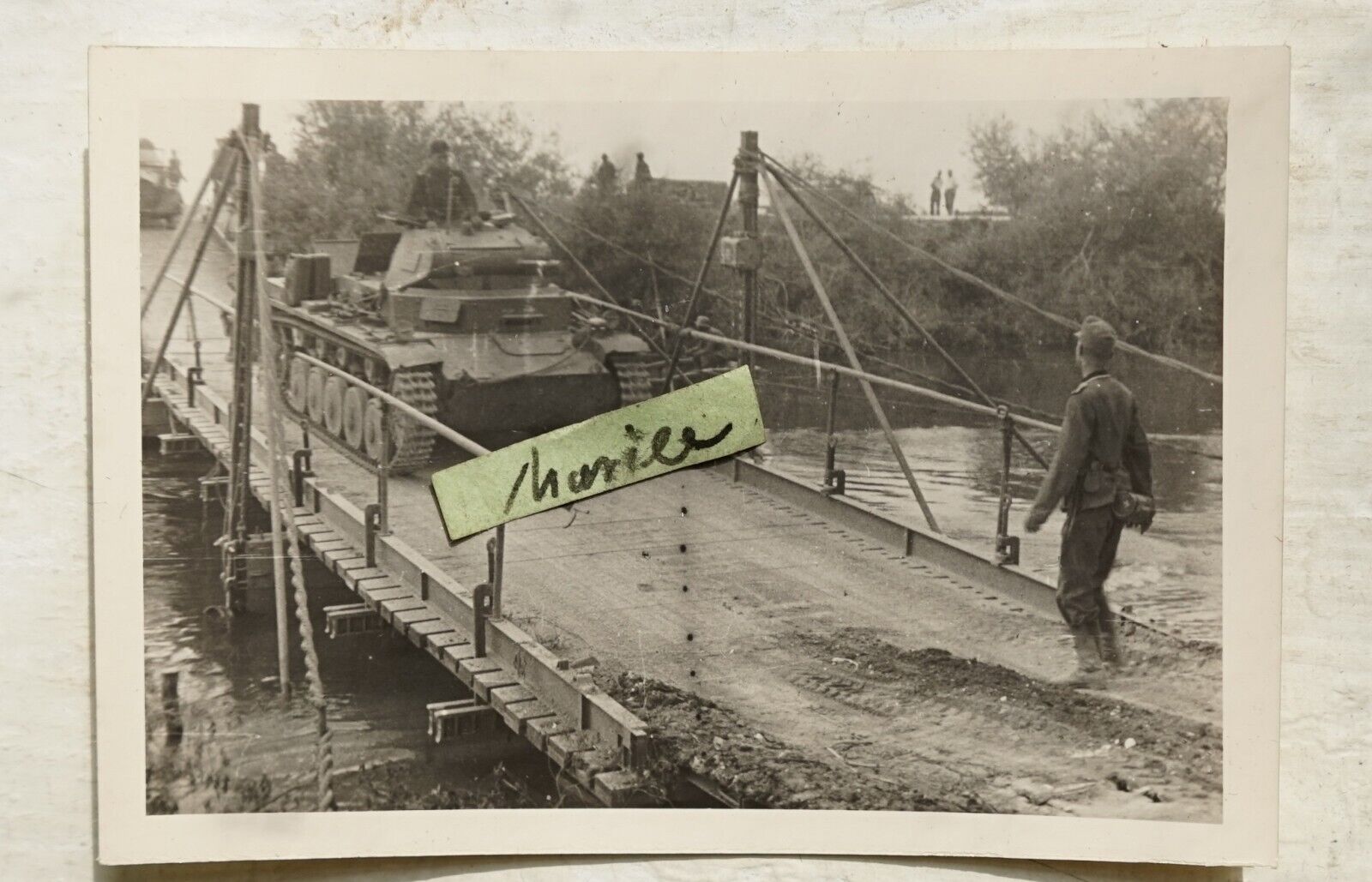 Foto alt Wk2 Frankreich Panzer Fahrer Besatzung Notbrücke Beschrieben Kampfwagen