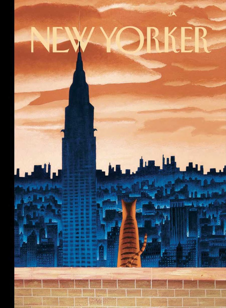 34-A cat sits on a building ledge observing the skyline. The New Yorker Jan 12, 2009 Mark Ulriksen