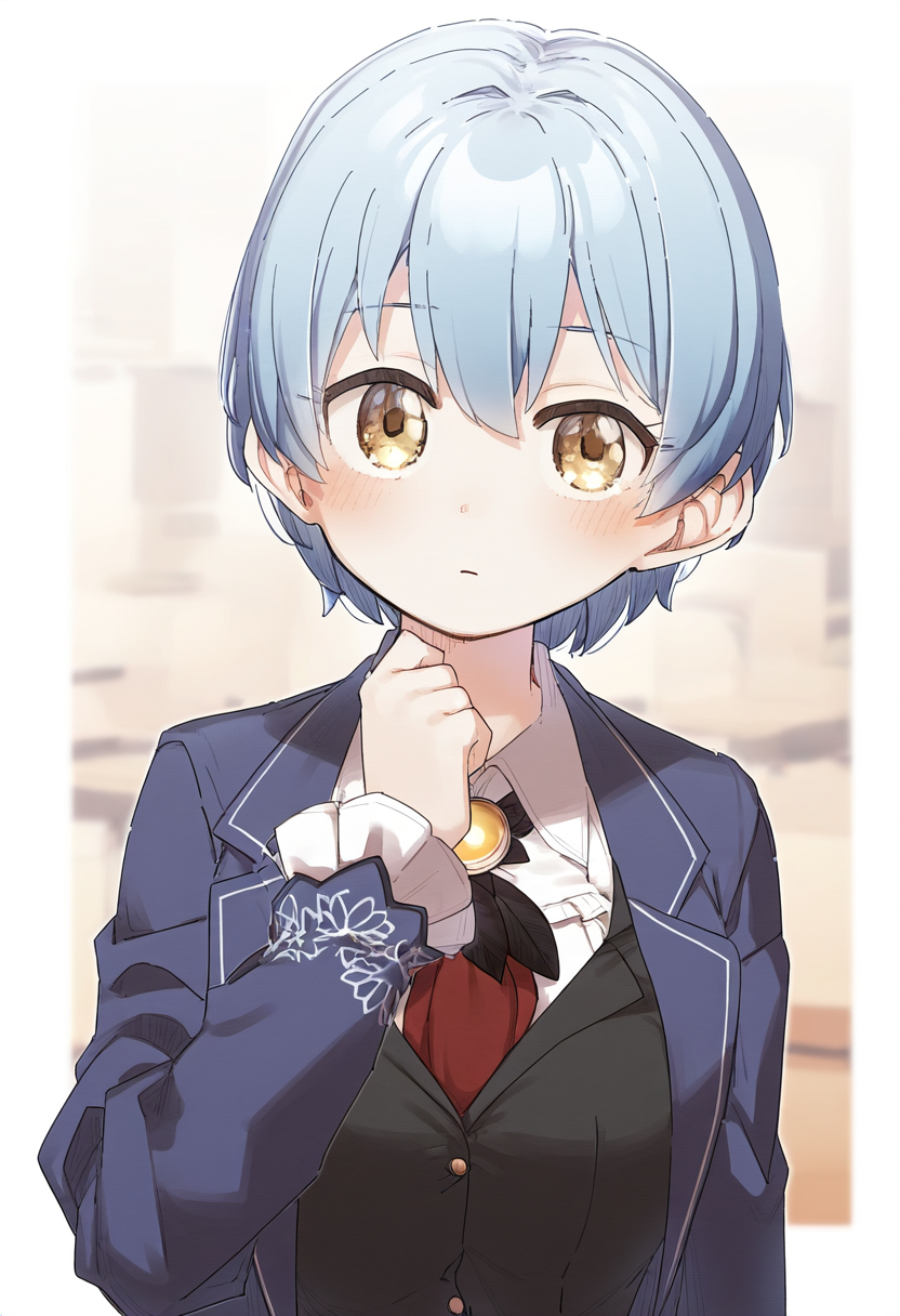 depth of field, 1girl, {{{angela (project moon)}}}, short hair, artist_ yukie (k s-2190945781
