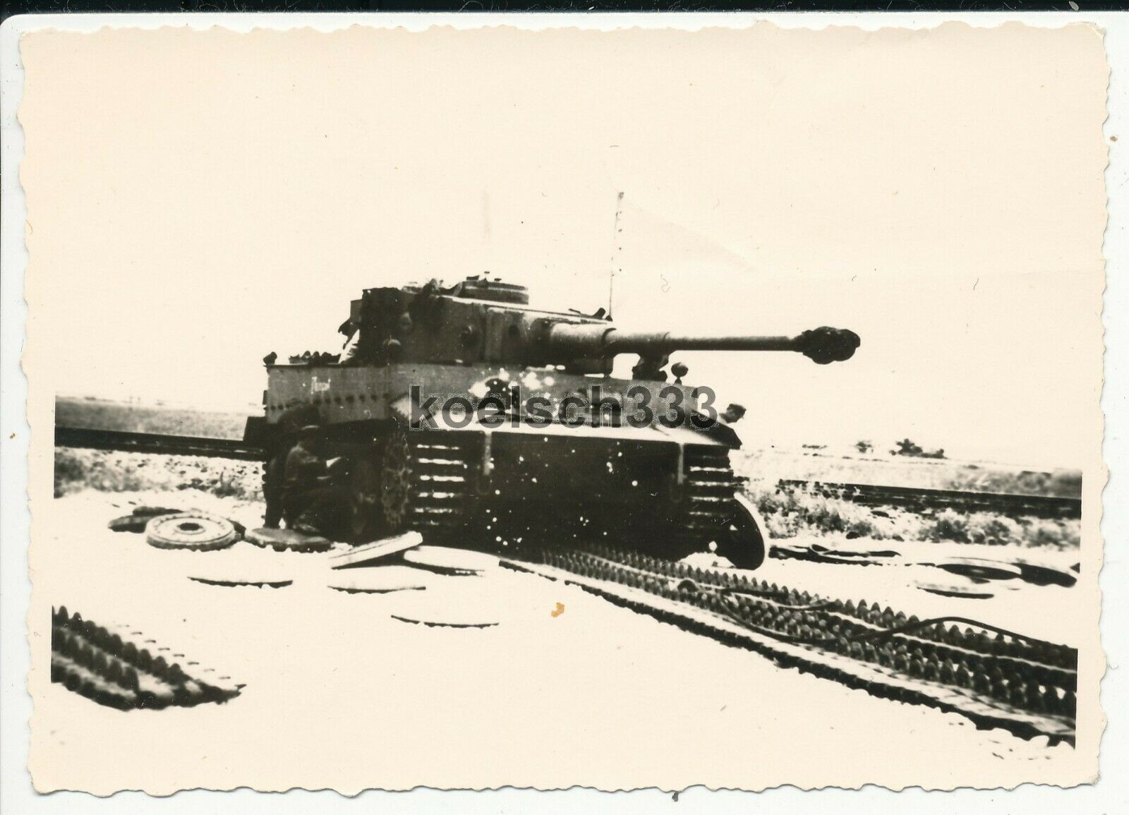 Foto Panzermänner arbeiten am Ketten Laufwerk vom Tiger Panzer VI im Osten ... !