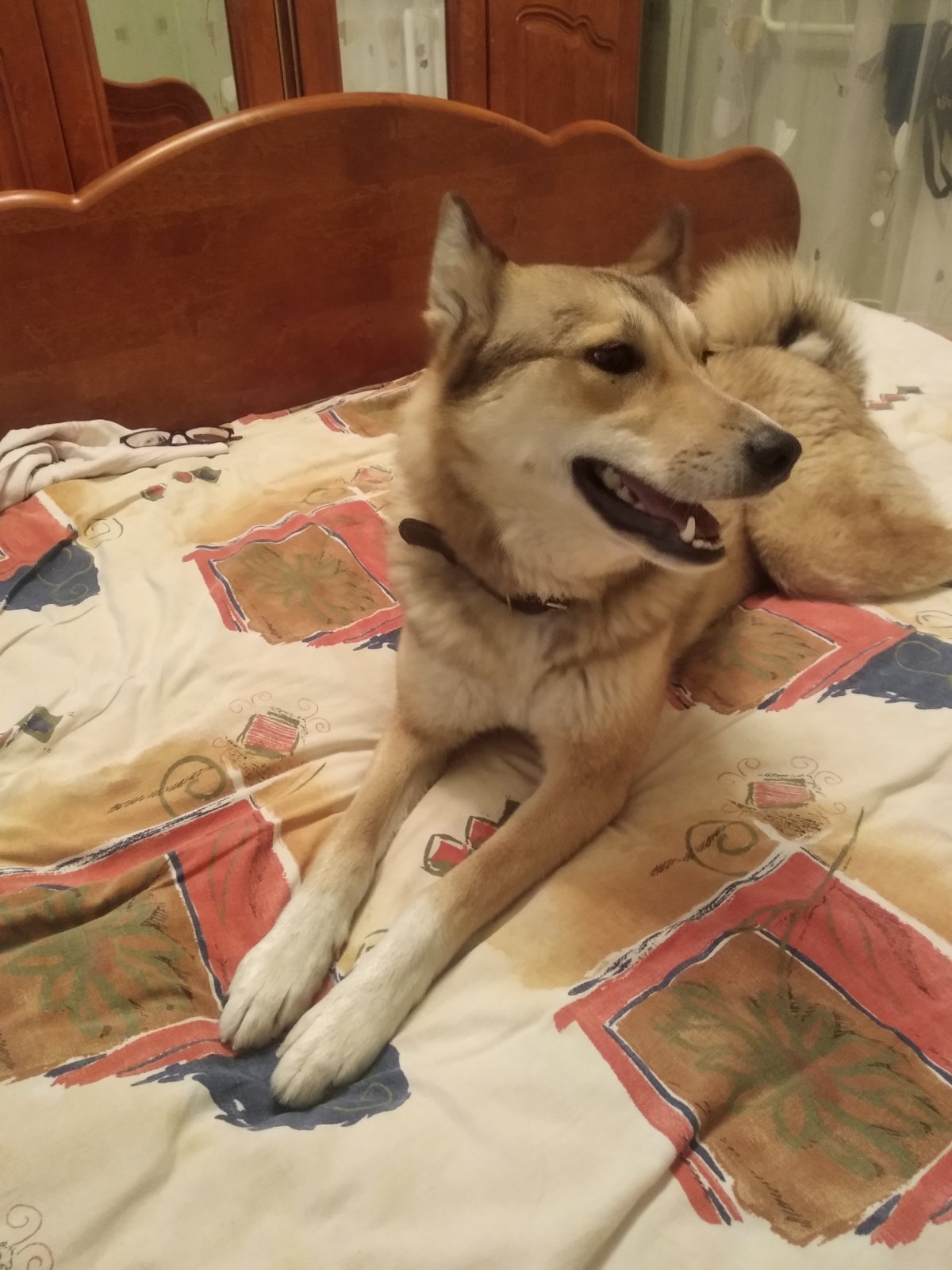 Lara on the bed in new flat