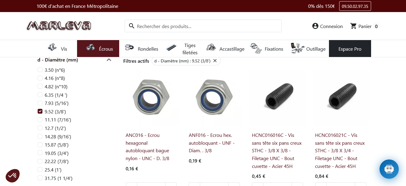 Marleva écrous filetage américain UNC UNF