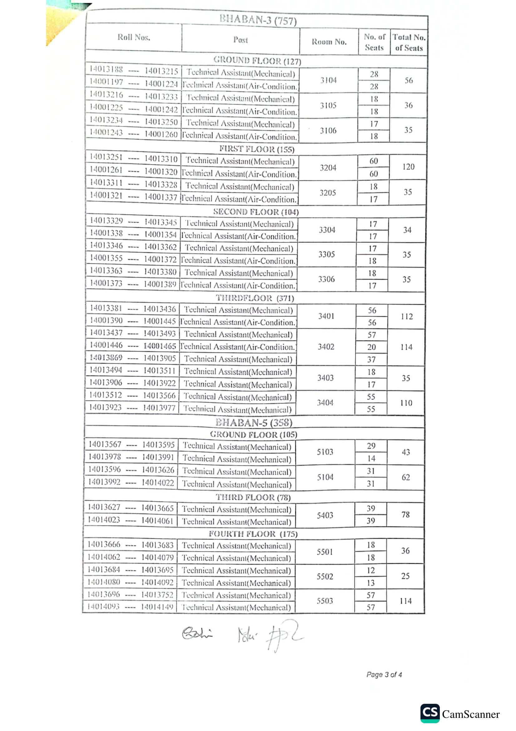 BTCL MCQ Exam Seat Plan 2025 PDF 3