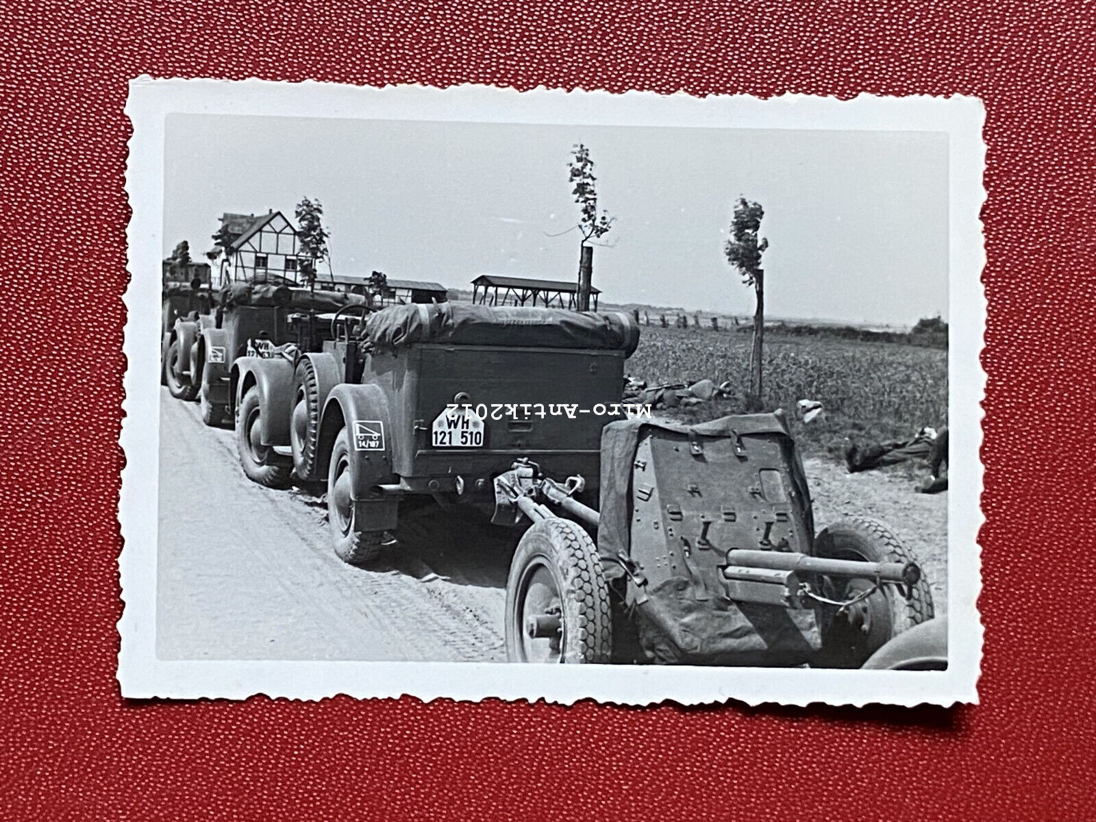 Foto, Wk2, Eineits Pkw und 3,7-cm-PaK 36 Geschütz