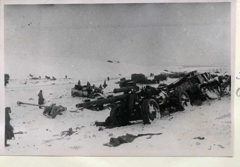 На поле боя после разгрома нем-фашистских войск, окруженных советскими войсками в районе Корсунь-Шев