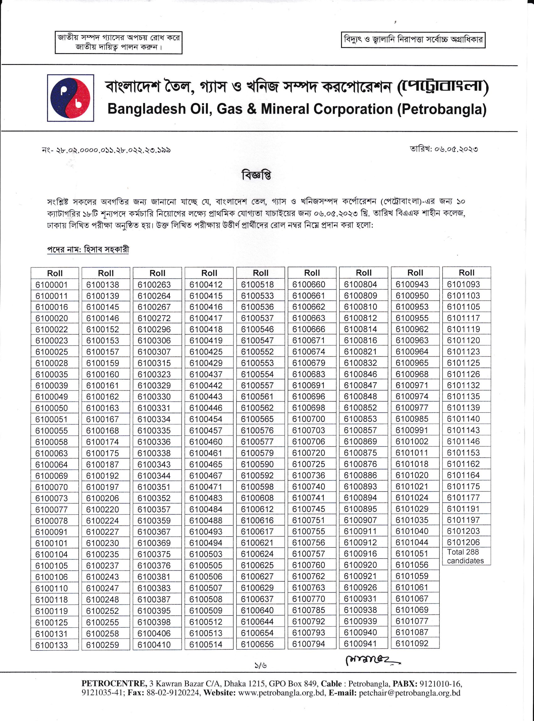 Petrobangla Exam Result 2023 PDF-1
