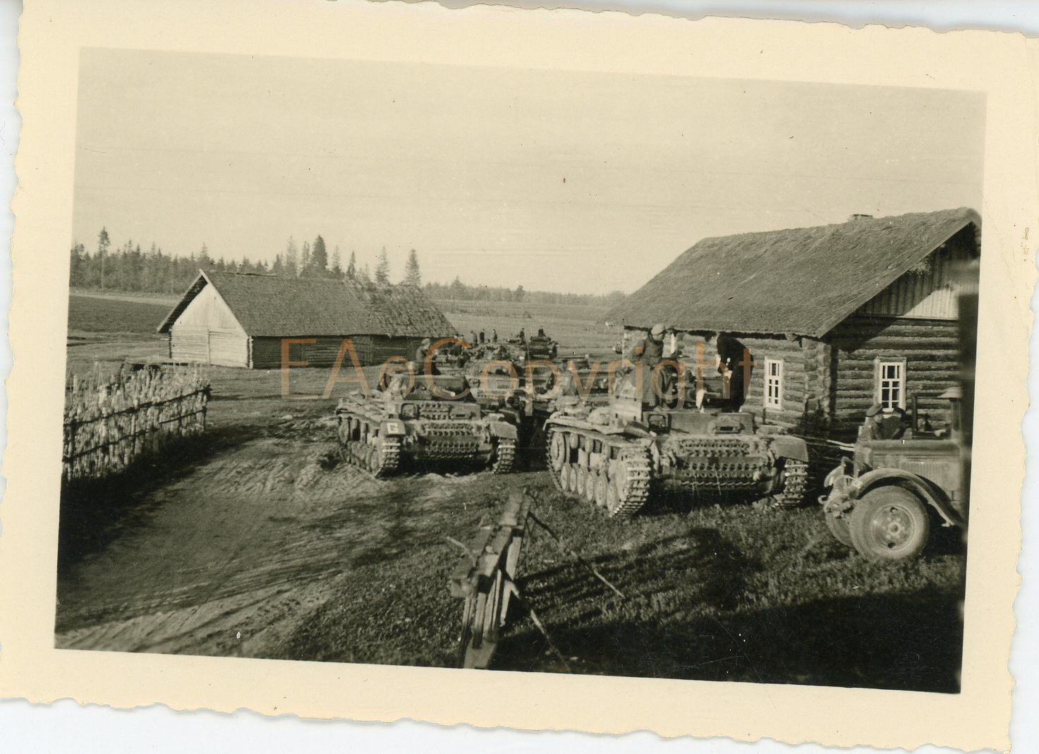 Russland Vormarsch Dorf Panzer Tank Kämpfe Foto